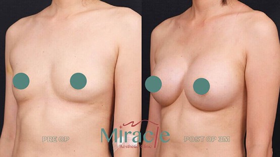 隆乳過程經由內視鏡輔助,腋下柔滴隆乳之後一周回診時,疼痛感減少了許多,到了三個月後,胸型整個也很自然而飽滿。
